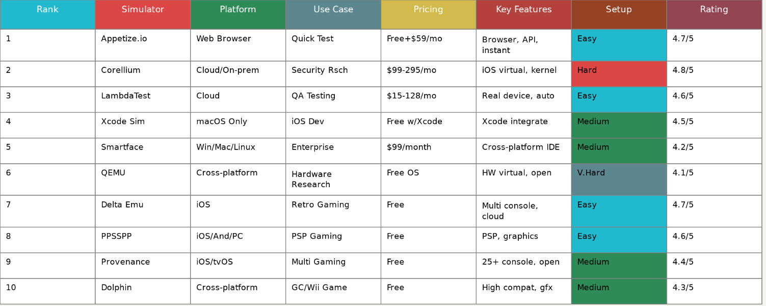 10 Best iPhone Simulators 2025 - Quick Comparison Chart