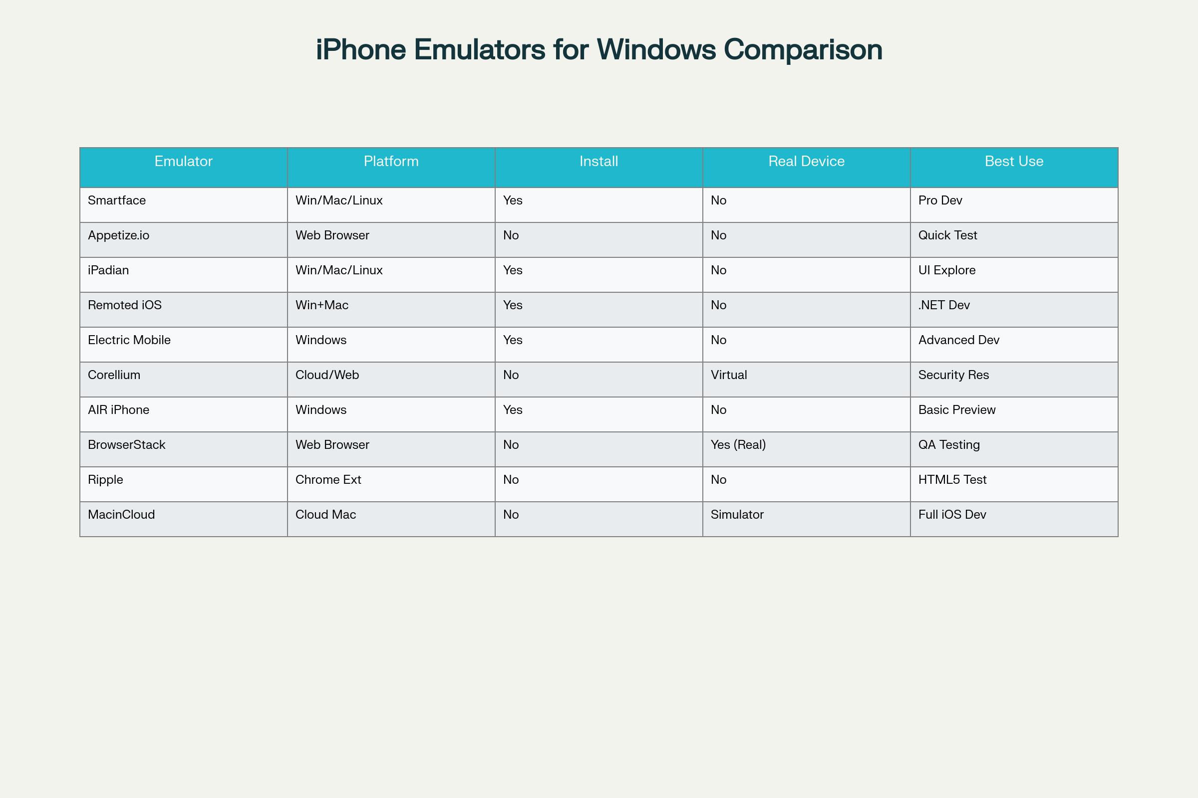 Selecting the best iPhone emulator for Windows PC depends entirely on your specific requirements, technical expertise, and budget constraints. These services justify their higher costs for serious developers requiring complete iOS toolchains.