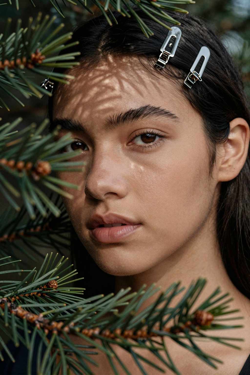 - Natural skin textures with film-grain aesthetics